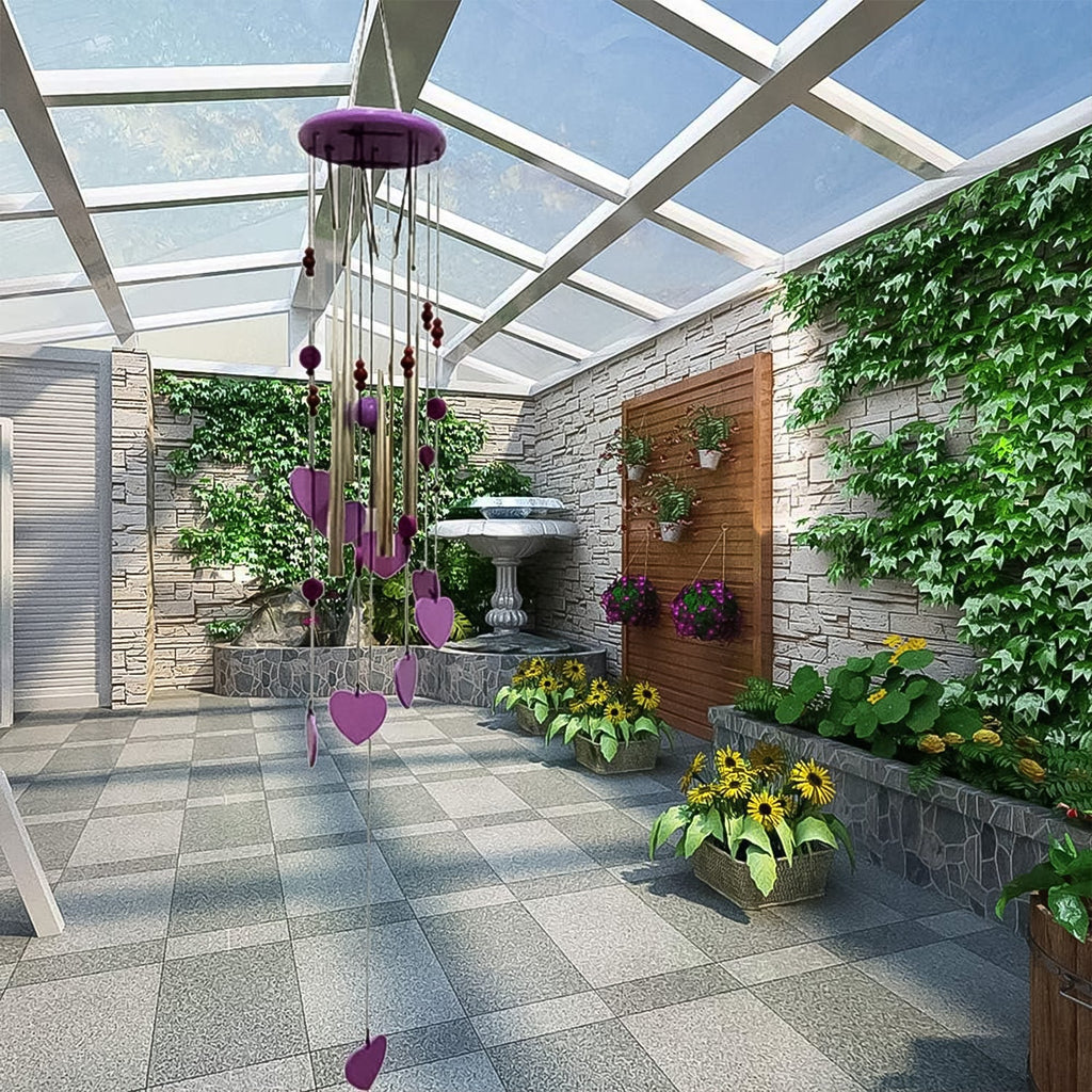 - 2. Unique Design, The wind chimes not only has excellent sound. The design has 5 aluminium tubes with a unique love, so you don't have to worry about them damaging or losing their appearance, so you can use them year after year.