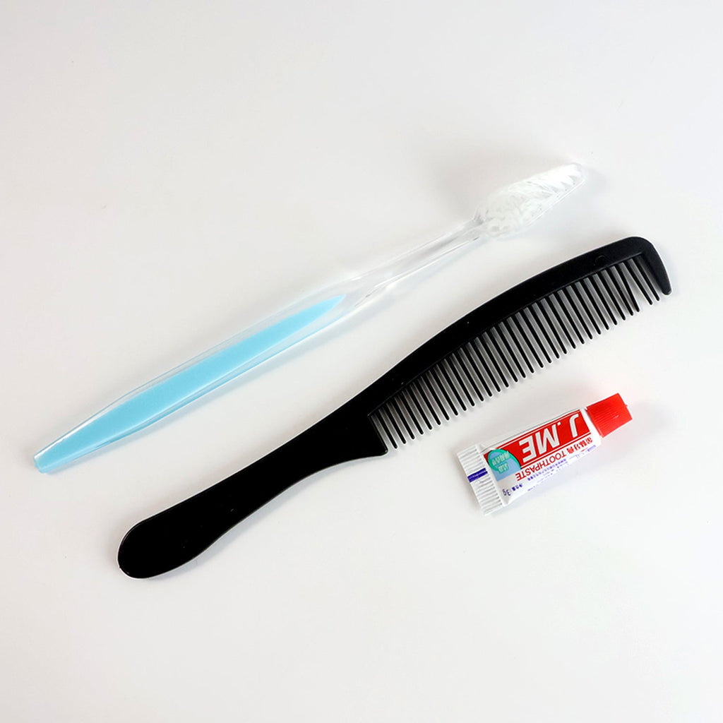 Complete Hygiene Kit: Includes a toothbrush, toothpaste, and comb, all essentials for maintaining oral and personal hygiene while on the go.